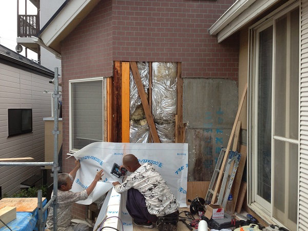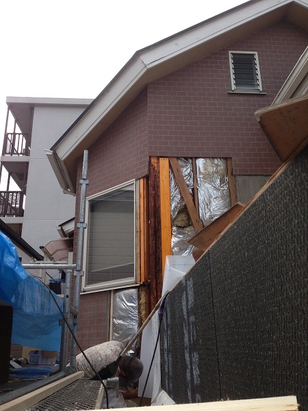 HOME 工事日誌 バルコニー改修 補強施工 船橋市 バルコニー改修 補強施工 船橋市 バルコニー造作中に見つかった通し柱の腐食。原因は定かではありませんが 部分的に腐食して、黒ずみもない状態でしたので、白アリ等の虫の可能性が高い ということでした。表面だけの劣化だったので、しっかり柱を抱き合わせ、 金物で補強していただきました。 シロアリの防蟻剤を塗って、完了。 今回の補強工事については、一人では厳しいということで親子で入っていただきました。 息もぴったりあって、防水シートも貼り終わり、大工さんの下地組は、ひとまず完了しました。 暑い中、ありがとうございました。 船橋店:中山