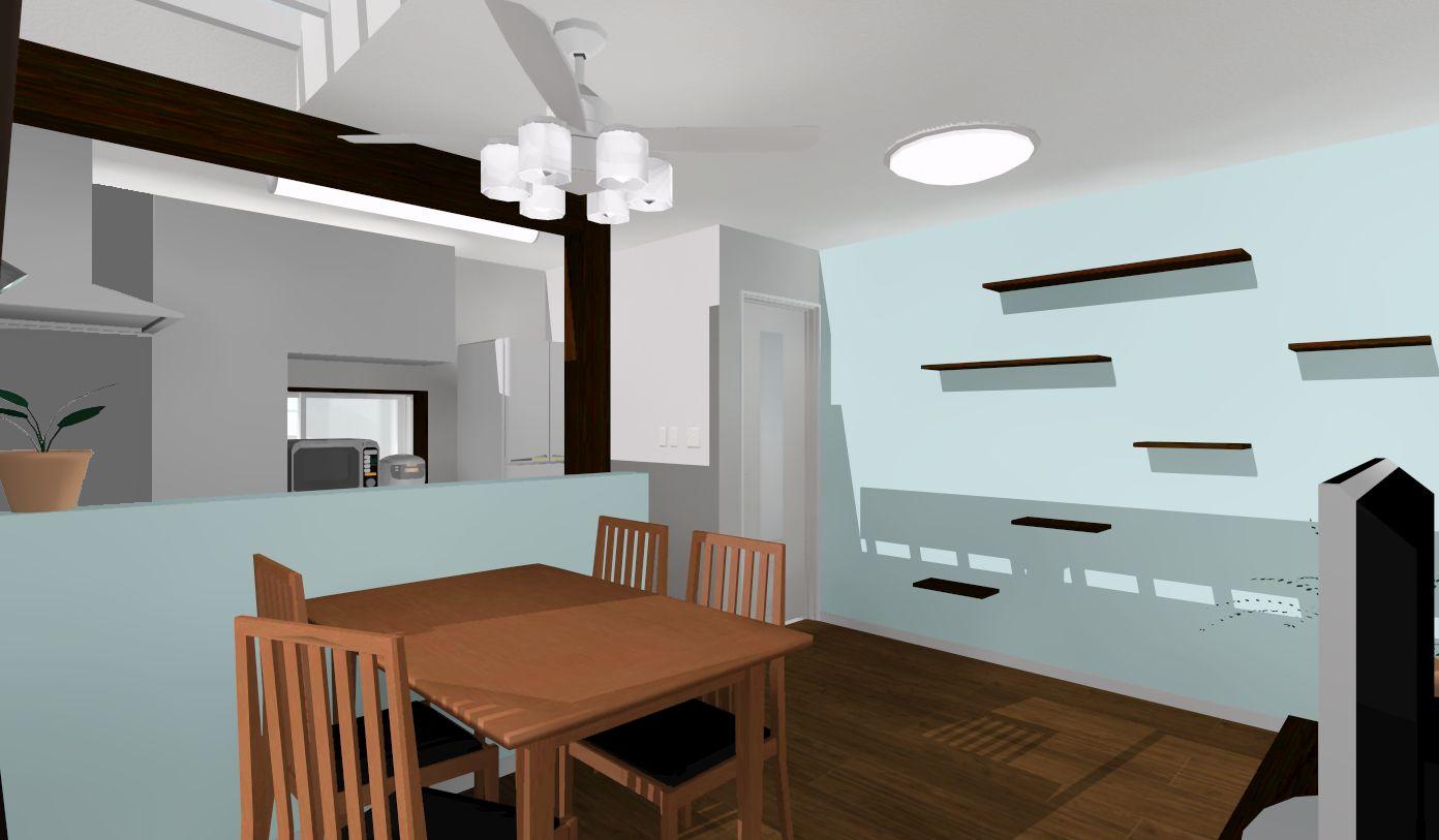 キッチン腰壁タイルと色を合わせて、アクセントウォールにします。