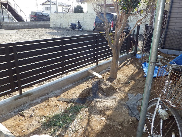 HOME 工事日誌 外構工事 境界部分のフェンス取付 外構工事 境界部分のフェンス取付 メインの門扉部分のフェンスとともに、お隣との境界部分のフェンスも順調に進行中です。 上記は、正面右側の境界部分のフェンスです。 ブロックを1段にハイグリットフェンスが取付られました。 裏側の境界部分には、お隣が駐車場とあって、 正面で採用した目隠し用のアルミフェンスを取付ていただきました。 フェンス部分は細かい施工を残して、8割方完了しました。 次は階段の石貼りの予定です。 船橋店:中山