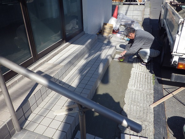 玄関アプローチ階段タイル貼り 市川市