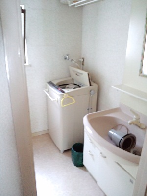 既存の洗面室。洗面化粧台側の壁を撤去し、スペースを