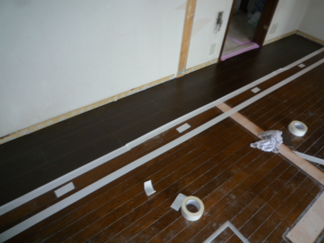 HOME 工事日誌 リフォームフロアー施工 松戸市 リフォームフロアー施工 松戸市 厚さ1.5mmのリフォームフロアーを施工していきます。 既存のフローリングに強力な両面テープで張り付ける、施工の簡単な床材です。 通常の厚さのフローリング材と見栄えは同じです。