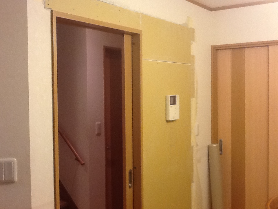 補強工事も、電線の逃げ工事も無事に終わったので、ボードでふさいで壁を作りました。
