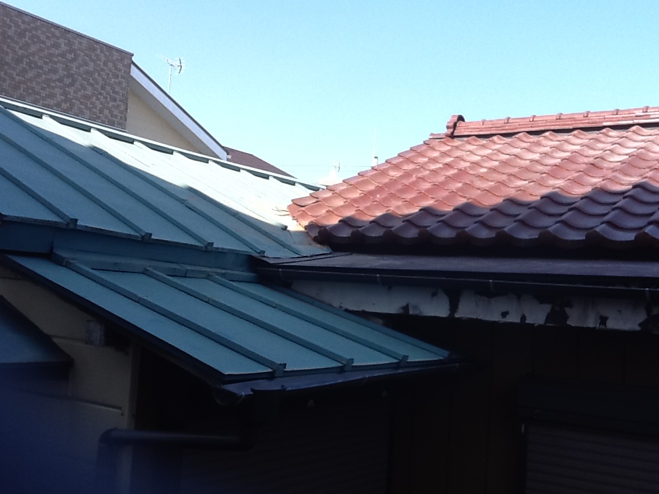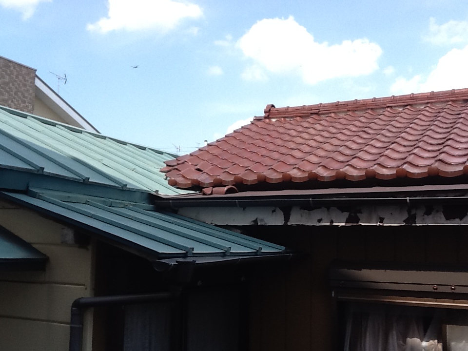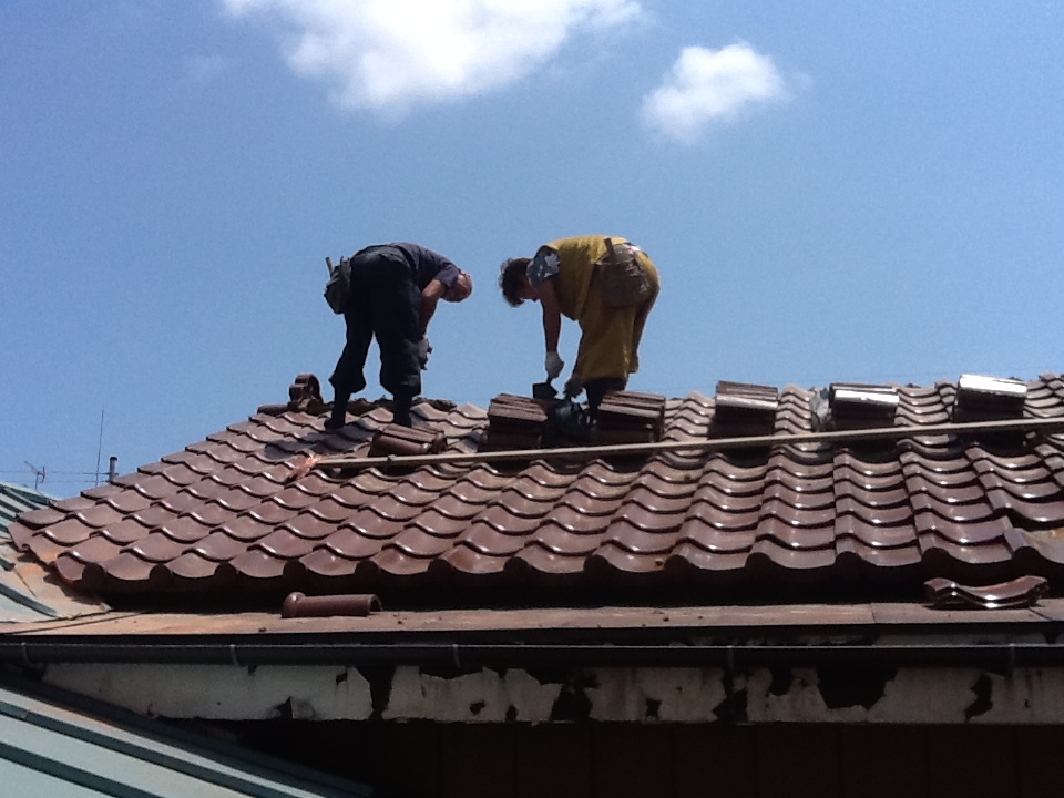 HOME 工事日誌 屋根雨漏れ修繕、棟積み直し工事 屋根雨漏れ修繕、棟積み直し工事 棟を撤去し、漆喰を盛っている様子です。 雨漏りの疑いがある箇所を直しました。 棟も全て積み直しました。 トタンと瓦の境目から雨漏れしており、棟も崩れかけていたので、その修繕工事です。 瓦が一部外れていて、棟にも隙間ができていることがわかります。 棟を撤去し、漆喰を盛っている様子です。 雨漏りの疑いがある箇所を直しました。 棟も全て積み直しました。 朝9時ごろ着工して15時には完工しました。 船橋店 藤井